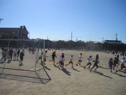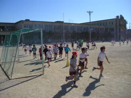 2月9日に行われる持久走大会に向けて,毎週月水金の中間休みに,全校で走っています。