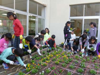 自然の生き物としての植物に関心をもち,栽培することの楽しさや喜びを味わうことをねらいとして花育活動が行われました。