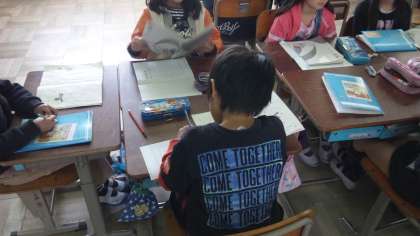 明日の音読発表会にむけてグループごとに最終練習をしました。アピールポイントを考え,全体の流れを確認しました。
