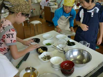 6年生は、お味噌汁とごはんを家庭科の調理実習として作りました。