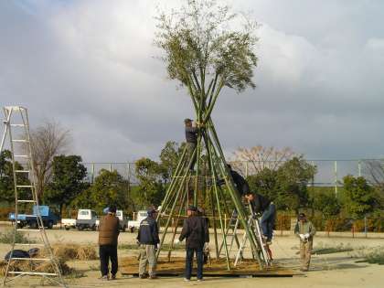 よし狩り・竹取りから行ってくださり,昨日組み立てが行われました。