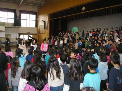 3月9日(金)の自由参観に,保護者や地域皆さま多数お越しくださりありがとうございました。朝,8時半からは「朝会」で3月11日で1年を迎える「東日本大震災」に向けて黙とうをささげました。また,5年生が総合学習「学校をよりよくするために」の取組みとして,「清掃の仕方について」全校に呼びかけをしました。次に,1年生が「向南タイム」で,入学してから今までで出来るようになったことを発表しました。
