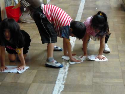 6年生のお兄さん,お姉さんに教えてもらいながら,一生懸命きれいにしています。