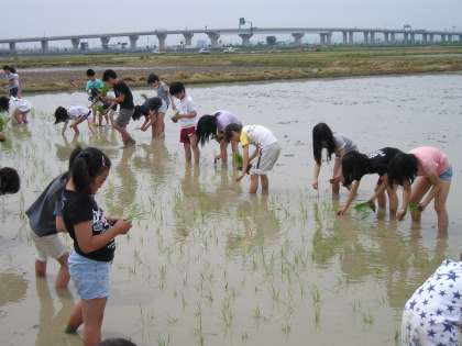 恒例の「田植え」を,少年補導や地域の方々にお世話になり今年も行うことができました。すばる高校の南にある,地域の方の田んぼまで歩いて行き,まず,植え方を丁寧に教えていただき,いざ,田んぼの中へ。初めて田んぼの中に入る子どもは,何とも言えない感触に声をあげていましたが,段々に慣れてきて,一生懸命に一つずつ苗を植えていました。田んぼから帰ってくると,少年補導委員の方々が作って下さった美味しいカレーを食べて満足しました。秋には,刈取り,12月には「もちつき大会」をしていただきます。めったに出来ない良い体験をさせていただきました。お世話になった方々ありがとうございました。