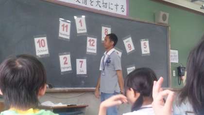 今日はALTの先生の授業。いつも楽しく英語に親しむことができます。今日は「月」。1月から12月を英語でどう言うのかを知りました。