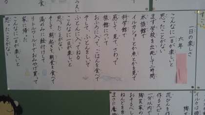 向島南小学校「詩の広場」。6月は6年生です。修学旅行のことを詩に表現しました。