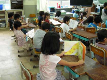 1年生の教室でも,8時30分のチャイムとともに静かな朝読書が始まります。読みたい本を図書室で借りていたり,学級文庫の本を楽しんでいたり…。