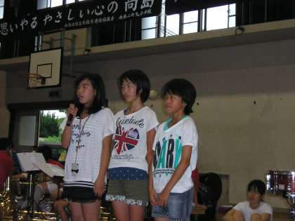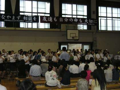 今年も本日7月20日(金),「愛のパレード」が行われました。今年度は,本校が会場校で,5,6年生161名・向島中学・向島二の丸小・二の丸北小の子ども達が集まり,児童会役員と生徒会役員が,学校紹介や夏休みに向けてのアピールを行いました。その後,迫力のある向島二の丸小学校の金管バンドクラブ・向島中学校の吹奏楽部の演奏を聴きました。