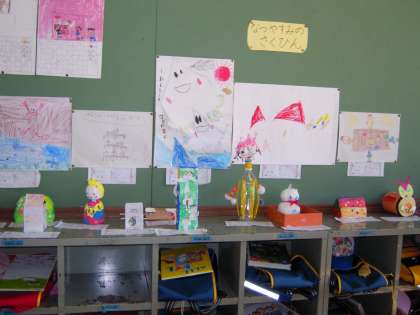どのクラスも,教室に夏休みの自由作品や絵日記が展示してあります。ていねいに描いた絵。工夫した工作。どれもすばらしい作品です。