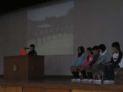 11月1日(木)朝会の後,6年生の向南タイムを行いました。小学校最後の運動会について発表しました。練習から当日まで力を合わせて取り組んだ「組体操」のこと,リーダーとしてがんばった応援団,係活動などそれぞれに一生懸命にがんばった様子が伝わりました。また,聞いていた他の子どもたちもたくさんの感想を話すことができました。