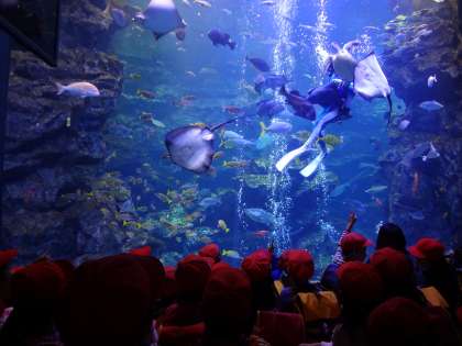 京都水族館では,オオサンショウウオを見たり,大水槽でダイバーショーを見たりしました。