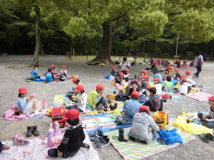 お昼ごはんの時には雨は止み,シートを広げてみんな仲良くご飯を食べることができました。