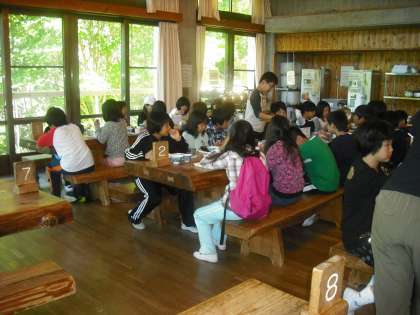 今日は,この山の家で最大の活動の山登りがあります。それに備えて,朝からしっかりと食事をとりました。めざすは,標高911メートルの雲取山です。