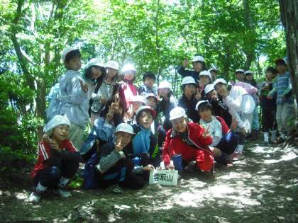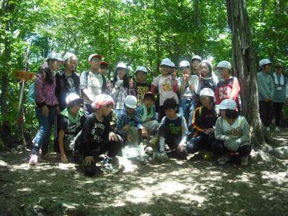ついに雲取山の山頂に到着しました。あまり見通しはききませんが,影があって昼食をとるのには絶好の場所です。幸いヒルなどの被害にあった子もおらず,全員元気に登頂しました。