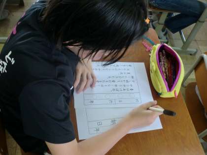 お手本を見ながらフェルトペンで書き上げました。字の大きさやバランス・空白の部分にまで意識しました。鉛筆とは違い、難しかったようです。また、やりたいですね!