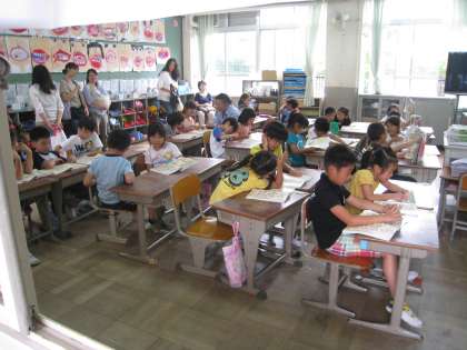 昨日までの雨も上がり,おおぜいの方に参観に来ていただきました。1年生も張りきって図工や国語の学習に取り組んでいました。