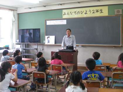 2年生は,3時間目に伏見警察署のスクールサポーターの方を講師にお招きして非行防止教室を行いました。警察の方のお話を2年生の子どもたちは一生懸命聞いていました。