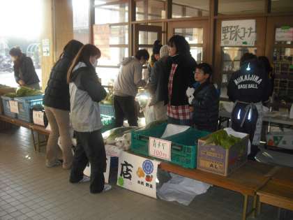 地元産の野菜も販売されました。白菜やねぎ,大根などとれたての新鮮野菜とあって大人気でした。野菜の提供をしていただきました地域の皆様,誠にありがとうございました。また,地域の方々は,子どもたちに昔の遊びも教えていただきました。ありがとうございました。