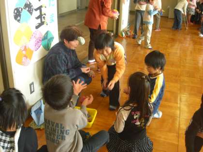 コマ回し,はねつき,お手玉など,今までうまくできなかった遊びが,ふれあいクラブの方にやさしく教えてもらって上手にできるようになりました。