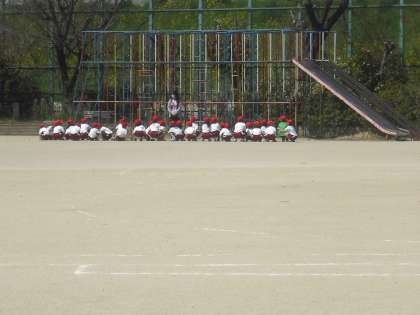 並び方などを練習した後,総合遊具の使い方を学習しました。