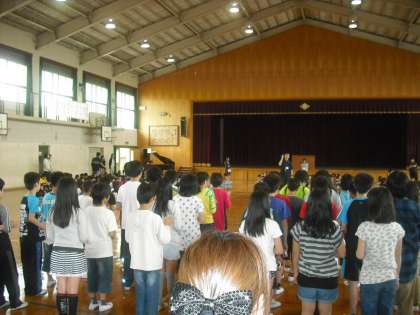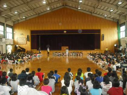 5校時は,1年生を迎える会がありました。1年生が一人ずつ名前を呼ばれ,大きな声で返事をしました。全校合奏や全校合唱もあり,楽しい会になりました。保護者の方もおおぜい来ていただきました。