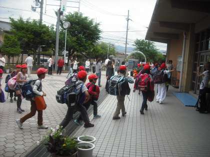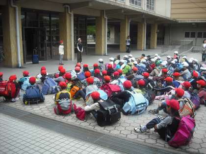4年生がみさきの家に向けて出発しました。お天気が少し心配ですが,思い出をいっぱい作ってきてくれることと思います。