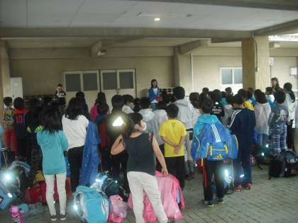 雨の中,多くの保護者の方々も出迎えに来られました。