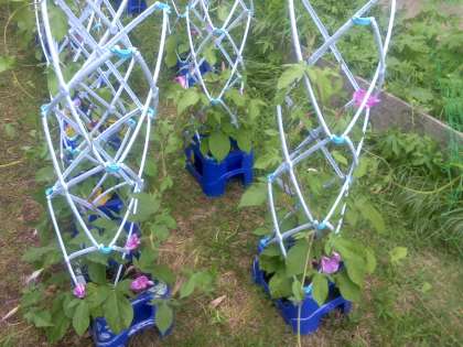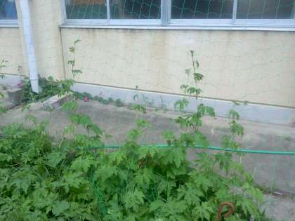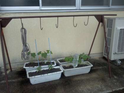 そして新たに給食室の前にもミニ緑のカーテンを設置しました。