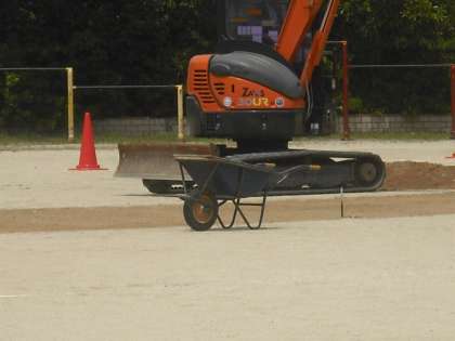工事の方のお話によると,本校の運動場の土は,最高級の品質のもので,たいへん水はけがよく,削り取った土を再利用するとのことでした。