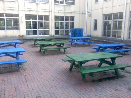 明日から学校の授業が再開します。不順な天候が続いた夏休みでしたが,今日で終わりです。教職員で玄関前の溝の土を取り除いたり,中庭のテーブルのペンキを塗り替えた他,地域やPTAの方々にお世話になり,校内の草刈りも行っていただき,環境もよくなりました。夏休み中,生き物の世話や水やりに来てくれた児童のみなさん,ありがとう。おかげで動物や植物も暑い夏休みを乗り切ることができました。