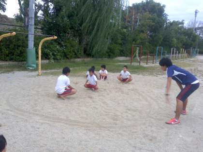 10/4(土)に御香宮神社で開催される相撲大会に本校からも出場するのに合わせて,今日と明日,放課後に砂場で練習をしています。