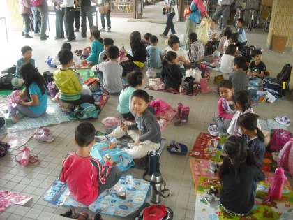 帰校後は,少年補導の方が用意していただいたおにぎりで昼食をとりました。