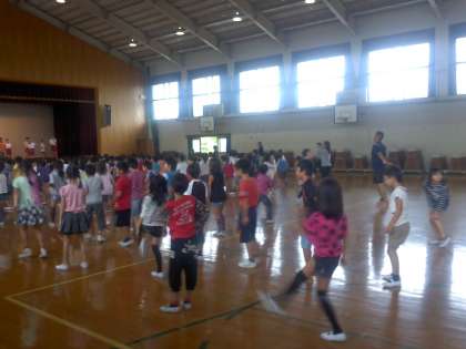 今日は,中間休みに全校ダンスの練習がある予定でしたが,中間休みがなかったため,昼休みに変更になりました。高学年のダンス係の子を見ながらでしたが,すぐに覚えられた子がたくさんいました。