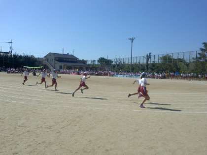 6年生の徒競走は,さすがにすごい迫力です。最後の運動会,悔いのないよう力いっぱい走りました。