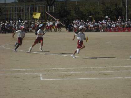 午前の部の最後は,低学年リレーです。すごい応援の中,全力で駆け抜ける子どもたちです。