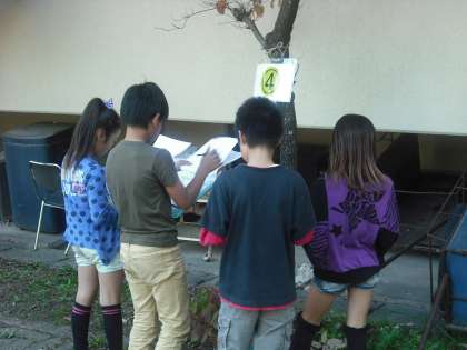 造園業の方をゲストティーチャーにお迎えして,校内にある樹木について,クイズラリー形式でくわしく観察しました。秋のこの時期は,色づいたり,美が落ちたりして木々が様々なに変化する時期ですが,アスレチック周辺にある樹木を中心に木の秘密について造園業の方からくわしく話を聞きました。