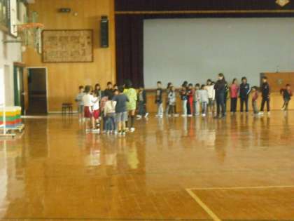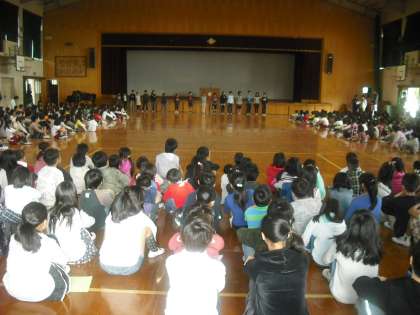 朝会・向南タイムに引き続き,児童集会とたてわり遊びがありました。