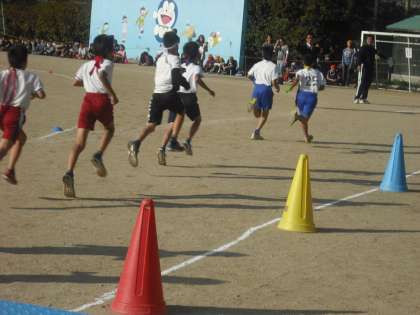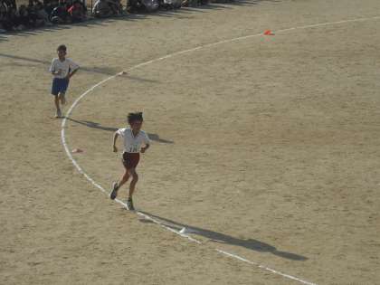 最初は,個人走です。多くの友達の大声援を受け,選手たちがスタートしました。白熱したレースです。ゴール間際での逆転もありました。