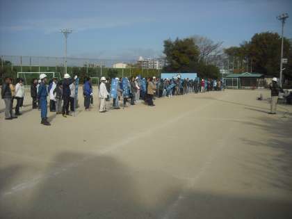 9:00に京都市に震度7の巨大地震が発生したとの想定で各町内で集合し,学校に学区民のみなさんがグランドに参集されました。