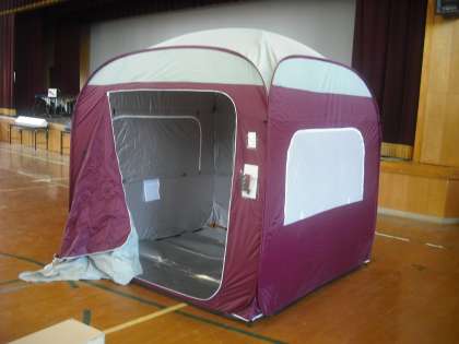 下の写真は,その一部です。上から,テント・簡易トイレ・発電機です。