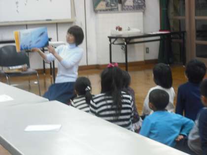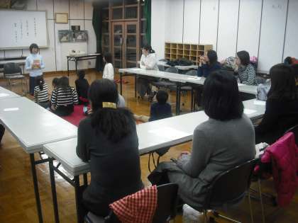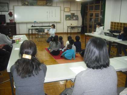 夜間に第2回家庭教育講座で「読書と子育て」題して絵本店経営者の花田睦子氏をお招きして読み聞かせと講演を行いました。子どもたちも参加して熱心に本の読み聞かせを聞いていました。また保護者の方向けには,絵本の奥深さなどについてお話していただきました。