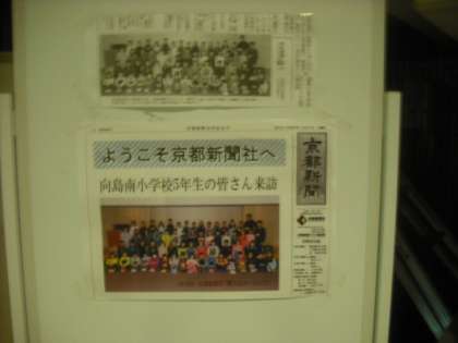 寒風が吹く中,NHK京都放送局と京都新聞社に社会見学に行ってきました。社会科で情報の学習を進めるため,様々なことを学びました。記念に京都新聞では,集合写真を撮っていただきました。本日(18日)の京都新聞の朝刊にその写真が掲載されていますので,ぜひご覧ください。