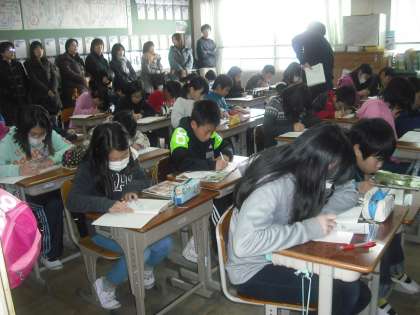 今日は,午後から高学年の参観・懇談会でした。6年生は,警察の方に来ていただいて,防犯教室を行いました。4年生は,PTC活動で親子で楽しいひとときを過ごしました。大ぜいの保護者の方に来ていただきありがとうございました。