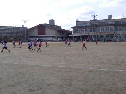 部活動サッカーの支部交歓会が向島藤の木小学校でありました。今年度最後の試合ということで,みんな張り切って試合に臨みました。お忙しい中,保護者の皆様にも大勢来ていただき,子どもたちを応援していただきました。ありがとうございました。