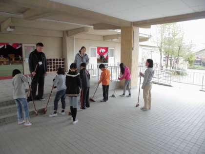 新1年生が気持ちよく入学できるようにと,体育館やピロティー,教室などの準備を心をこめて愛をこめて進めてくれました。