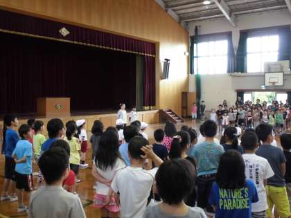 6月に入り,児童集会を開きました。3年生以上の子たちから,各学級2名の代表委員が前に立ち,紹介されました。