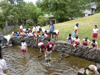午後の活動は,引き続き好天の中で,魚つかみです。池に放流されたイワナをつかむのに,みんな大苦戦でしたが,苦手な子も含め,全員つかむことができました。