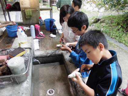 いよいよ魚をさばいて,食べる活動です。今日,子どもたちの1日の活動のめあては「自然」。自然の生き物の命をいただく,貴重な体験でした。感謝の気持ちも必要になってきます。