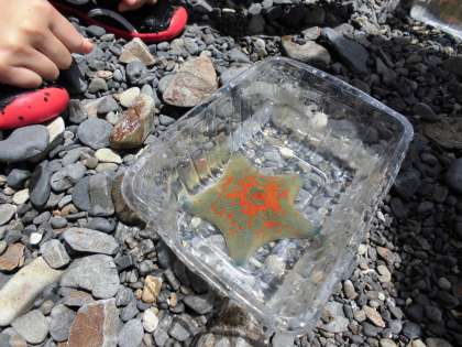 磯観察に引き続き,明日行くことになっている志摩マリンランドの方から,ヒトデについて教えていただきました!