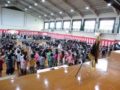 今年は向島南小学校に50名の新入生を迎えることができました。これから始まる小学校生活に期待と不安でいっぱいの新入生を6年生がしっかりサポートしてくれました。2年生のお迎えの言葉もりっぱでした。